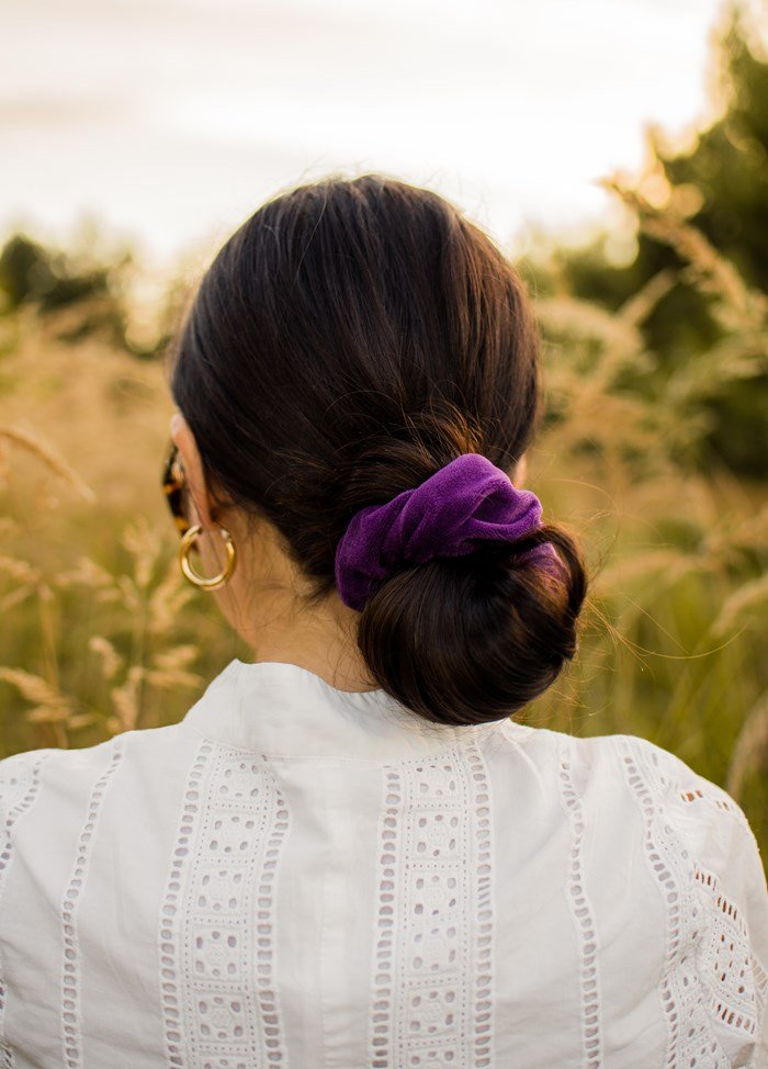 Welurowa gumka w odcieniu fuksji. Miła w dotyku.
