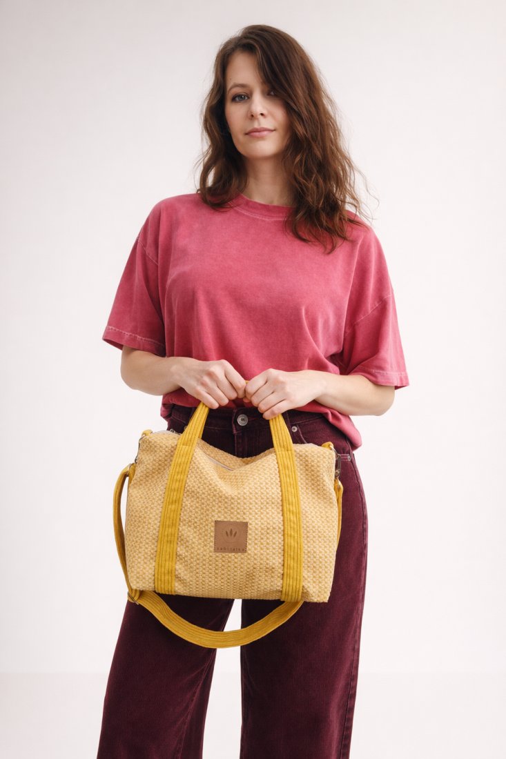 Średniej wielkości torebka kuferek, która może być mini torbą podróżną lub codzienną.