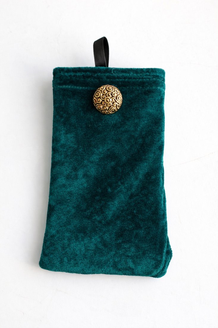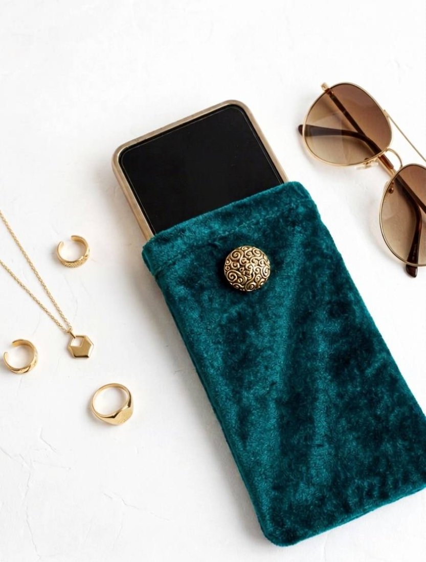Miękkie, przyjemne w dotyku etui na telefon wykonane ze szlachetnego weluru. Materiał jest rozciągliwy, więc telefon można łatwo włożyć i wysunąć. Futerałowi uroku dodaje zapięcie na ozdobny guzik. Produkt idealny również na prezent.