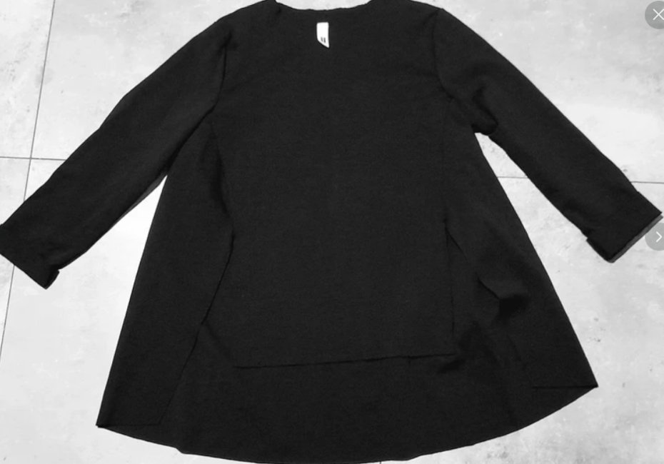 Asymetryczna bluzka z doskonałej gatunkowo dzianiny stan idealny długość 65/80 szerokość pod pachami 52x2 tył dłuższy surowe wykończenia rozcięcia z przodu jak nowa
