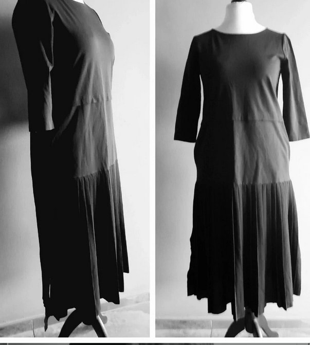 Nowa bez papierowej metki śliczna klasyczna ponadczasowy fason cotton z polyamidem elastanem 62/30/8, rękaw 3/4, długość 112 szerokość pod pachami 48x2, manekin rozmiar 38/40 wygląda dobrze ale na mniejszym rozmiarze kiedy jest lużna wygląda znakomicie, kieszenie w szwach, po bokach na granicy przodu z tyłem do wysokości plis rozcięcia, z tyłu na dole przy rozcięciu od wewnętrznej strony małe przebarwienie niewidoczne przy użytkowaniu, wadą ujęta w cenie
