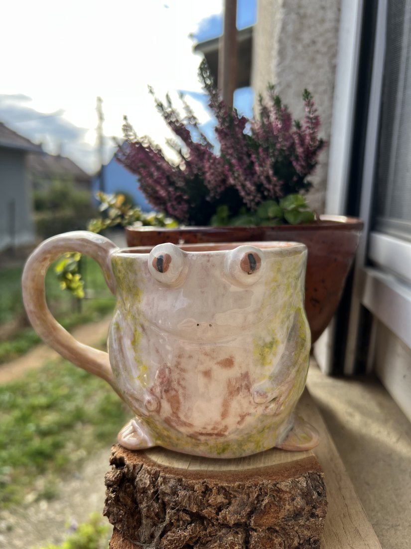 Rozjaśnij swoje poranki tym uroczym, ręcznie wykonanym ceramicznym kubkiem w kształcie żabki! Każdy egzemplarz jest wyjątkowy, więc możesz mieć pewność, że obdarowana osoba otrzyma coś naprawdę szczególnego.
