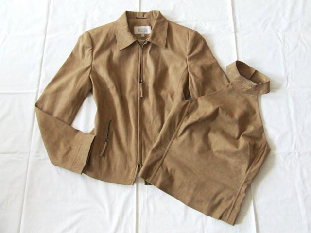 Fajny komplet z eko zamszu (bluzka gorsetowa z fiszbinami+ kurtka zapinana na zamek). Marka: Next. kolor koniakowy.