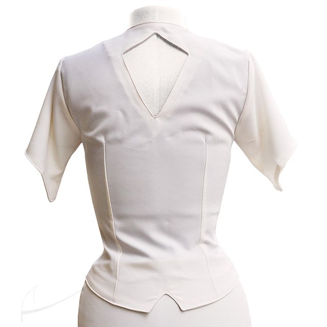 Tył z rozporkiem i wycięciem na plecach w kształcie karo.