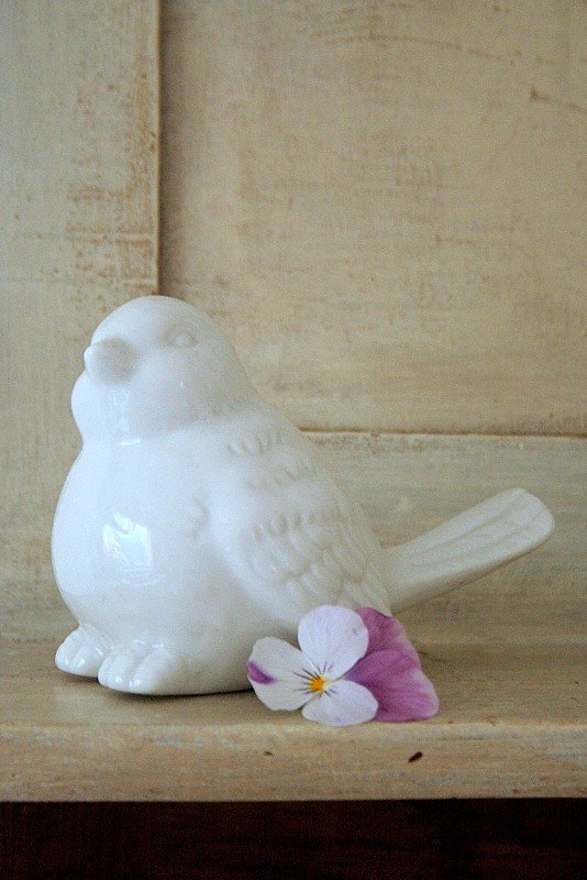 Ciekawy ceramiczny duży ptaszek. W kolorze białym. W pozycji siedzącej:)