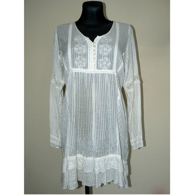 Biała sukieneczka, lekka, zwiewna, uszyta w folkowym klimacie.