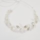 Wianuszek wyplatany na srebrnym druciku, dekorowany metalowymi listkami, kryształkami oraz kamieniami w oprawach Preciosa. Wianuszek plastyczny o pięknym połysku. Długość 33 cm. Wiązany na sznureczki, doskonale utrzymujące ozdobę na miejscu. Dostępna także wersja złota.