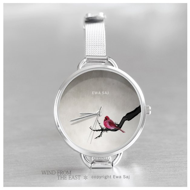 Niepowtarzalny, autorski zegarek z limitowanej kolekcji Wiatr ze Wschodu. Wielkość tarczy zegarka 36 mm, szerokość paseczka 8 mm. Passeczek to delikatna metalowa bransoletka z klasycznym zapięciem (na małą sprzączkę).