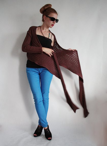 Oryginalny sweterek, który można nosić na kilka sposobów. Materiał oceniam na akryl.