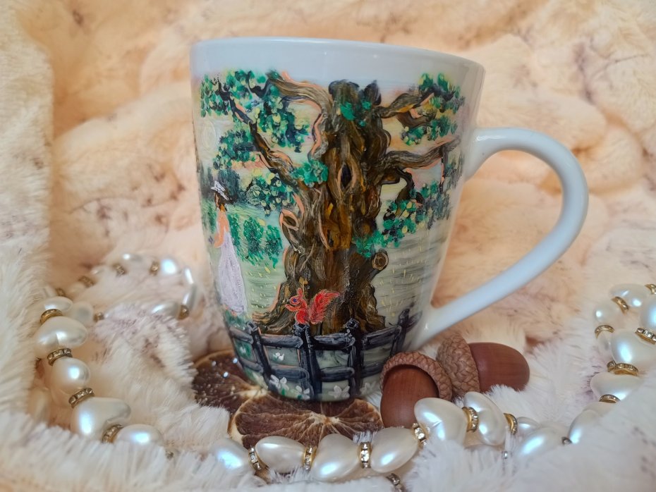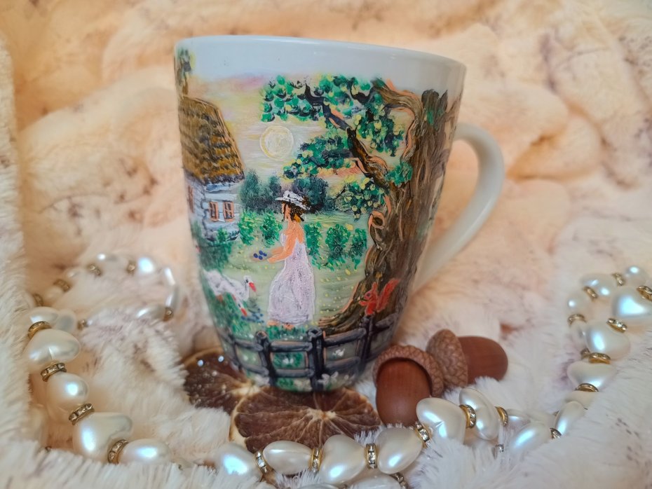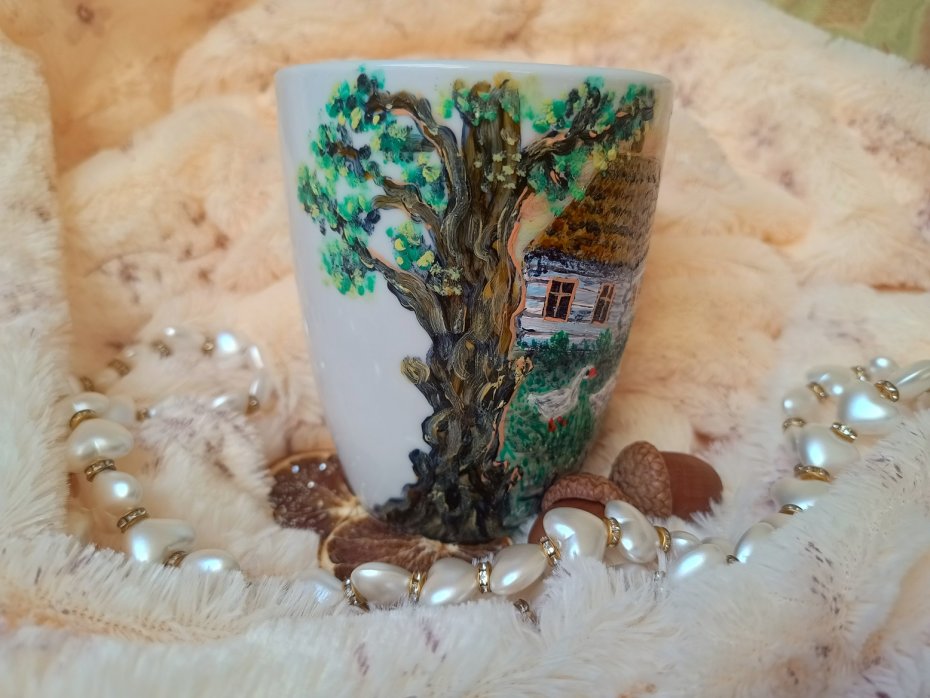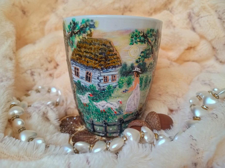 Kubek malowany wiele godzin z wielką troską o wszelkie szczegóły z miłości do natury, z miłości do tego co piękne i ulotne..