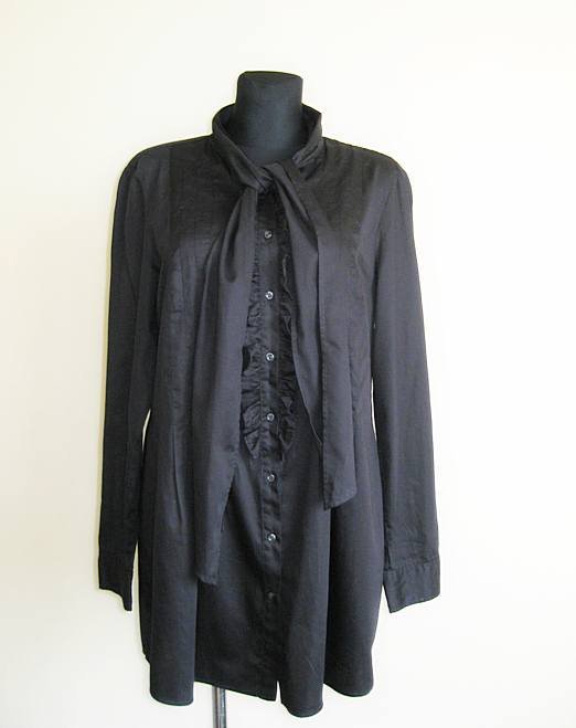 Koszula/tunika produkcji portugalskiej. Materiał 100% bawełna. Ozdobiona z przodu falbanką i wiązaniem pod szyją. Z przodu i z tyłu dopasowujące zakładki, luźno puszczone na biodrach. Stan bardzo dobry, prawdopodobnie nieużywana. Rozmiar z metki XL. Myślę, że powinna pasować raczej na 44. Podaję wymiary mierzone na płasko;