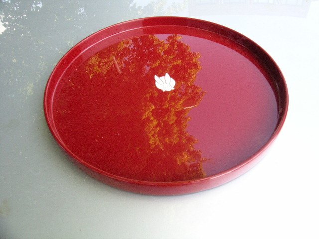 Wielce ciekawa niewielka Tacka; Laka to najprawdopodobniej z dekorem z masy perłowej i wielce praktycznym anytposlizgowym spodem. Baardzo oryginalna to rzecz; Piękny lakowy kolor na błyszcząco wykończony; Idealna na kieliszki,ale nie tylko....Uroda,ozdoba,dowcip i oryginalność :)