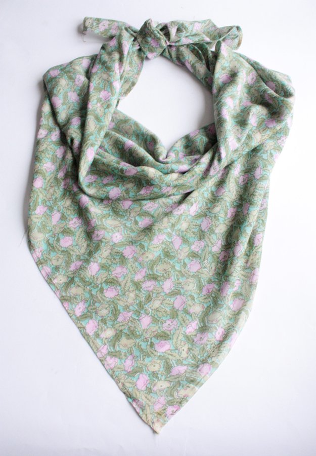 Miękka, duża chusta w roślinne motywy. Materiał to prawdopodobnie bawełna lub wiskoza.