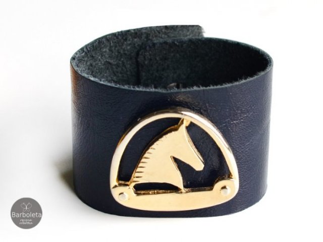 Ozdobiona metalowym konikiem w kolorze złotym.