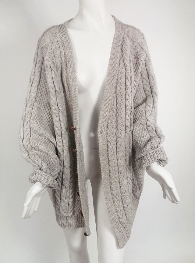 PIĘKNY WIELKI SWETER Z DUŻYMI BRĄZOWYMI GUZIKAMI