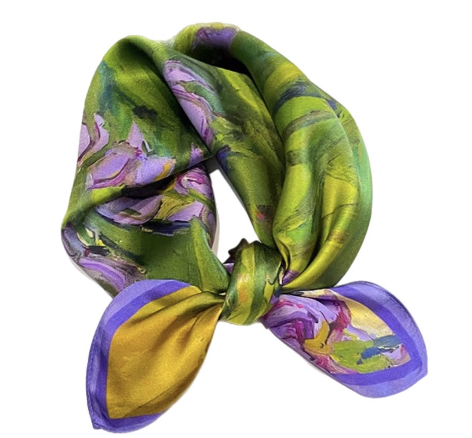 Apaszka z jedwabiu morwowego fioletowe kwiaty jak malowane