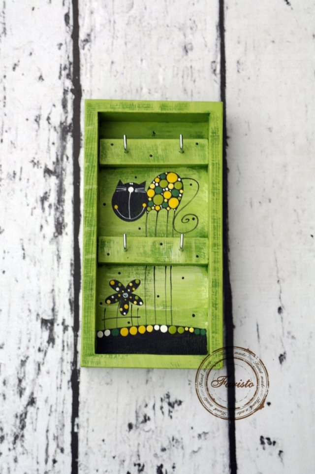 Malowany ręcznie farbami akrylowymi(ekologicznymi) wieszaczek na klucze bądź inne drobiazgi.