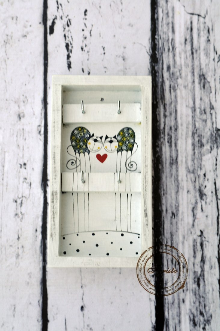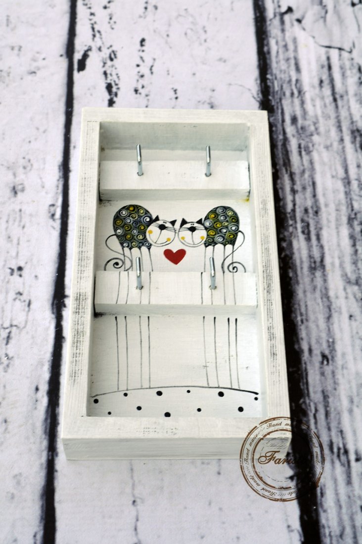 Malowany ręcznie farbami akrylowymi(ekologicznymi) wieszaczek na klucze bądź inne drobiazgi.