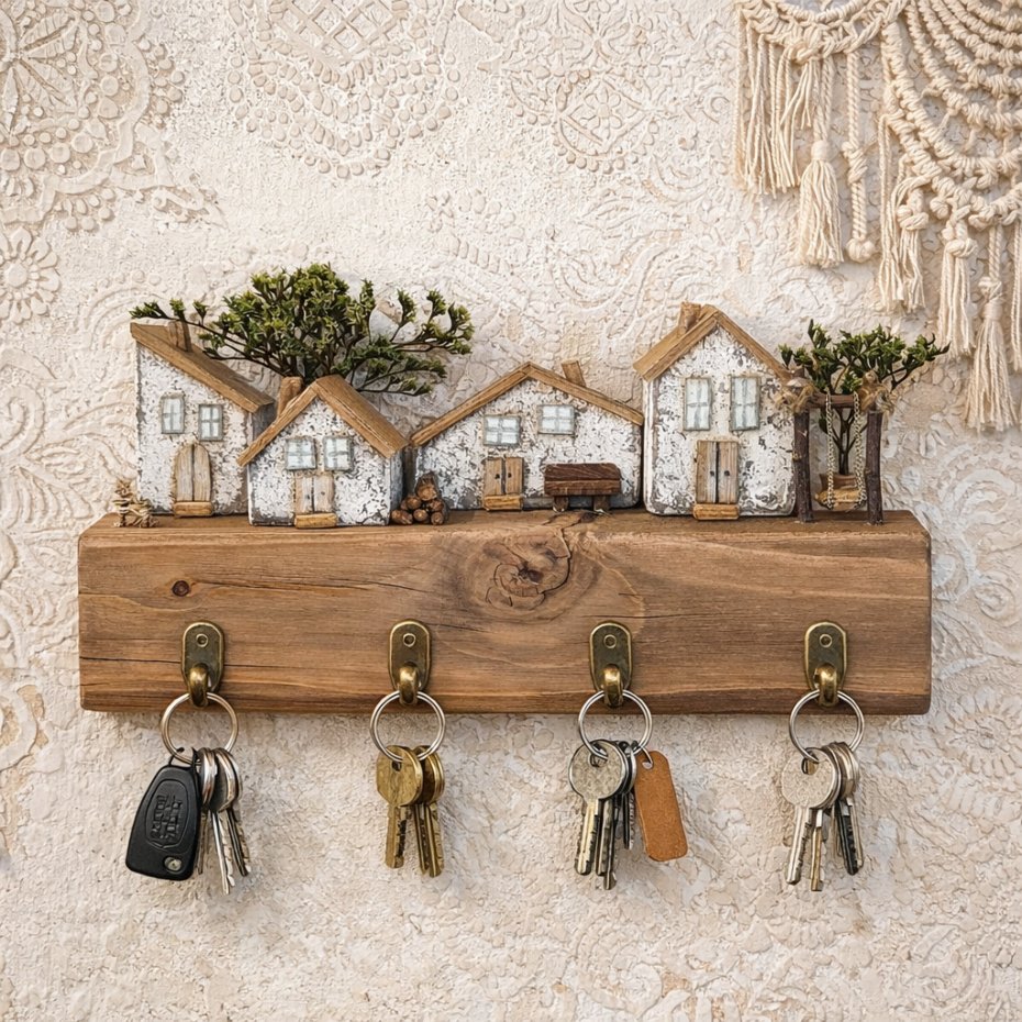 Ręcznie wykonana dekoracja, która wnosi do wnętrza ciepło i spokój. Może zdobić półkę lub ścianę, a po zamontowaniu haczyków świetnie sprawdzi się także jako wieszak na klucze ????
