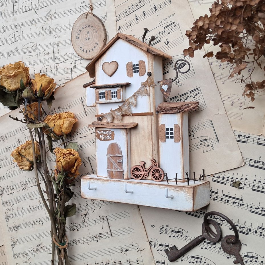 Tagi: #domki z drewna, #drewniany wieszak na ścianę, #prezent do domu, #rustykalny wieszak na klucze