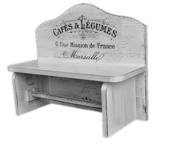 Drewniany wieszak na ręczniki papierowe malowany farbami akrylowymi, postarzony i pokryty lakierem bezbarwnym.