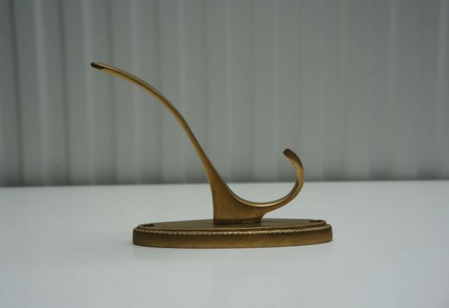 Mosiężne wieszaki do przytwierdzenia (szt. 2). Przedmiot stary, używany. Stan zachowania b. dobry, widoczne ślady użytkowania.