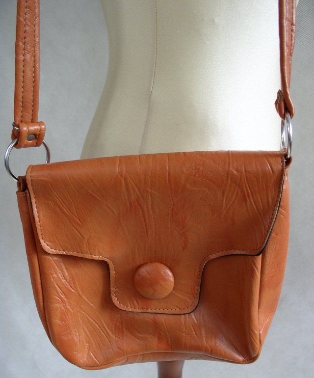 Torebka uszyta z syntetyku.Klapka zapinana na zamek zatrzaskowy,z guzem.W środku jedna komora.Pasek do noszenia na ramieniu.Stan bardzo dobry-.Wysokość 23 cm.szerokość 25 cm.pasek dł.93 cm.-regulowany.