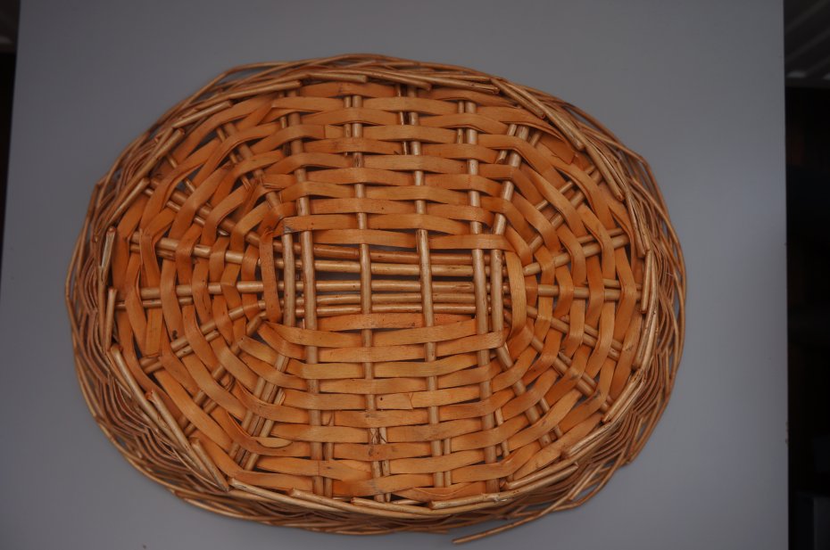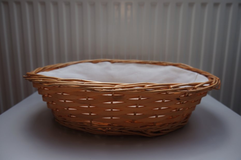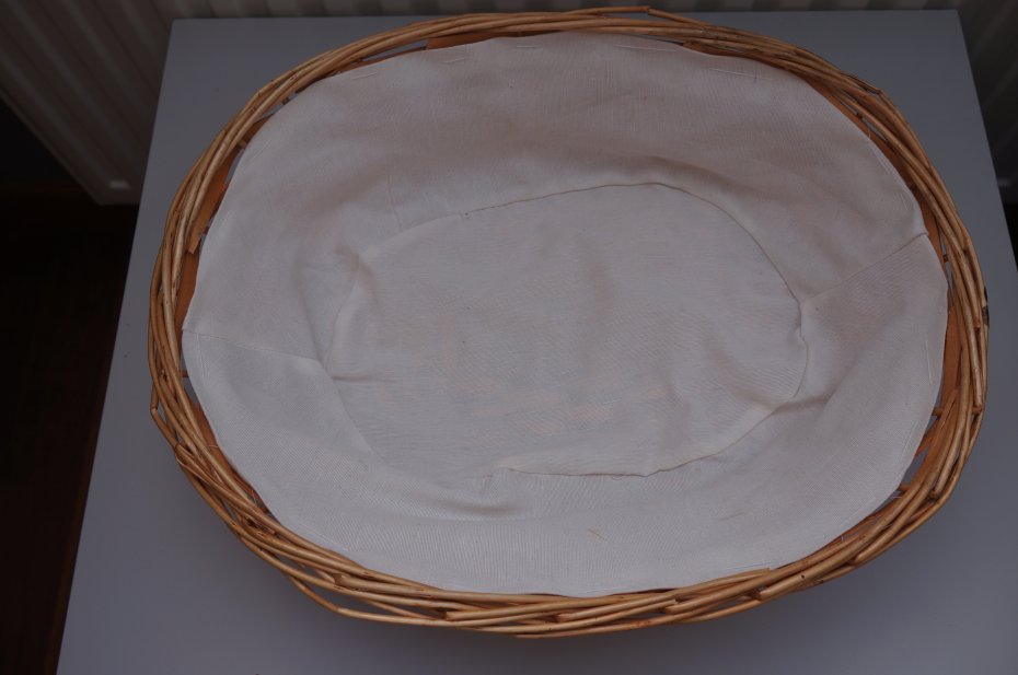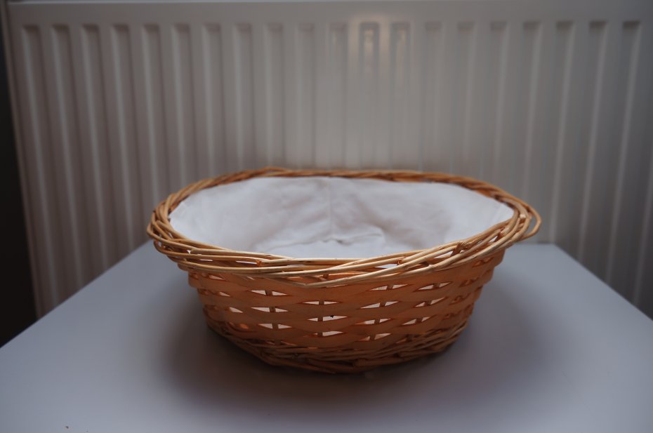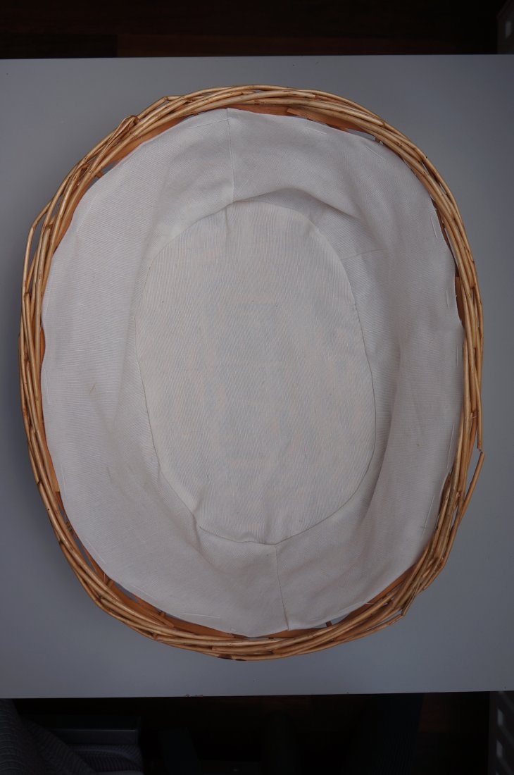 Owalny , wiklinowy koszyk z płócienną wyściółką. Nowy. Stan bardzo dobry.