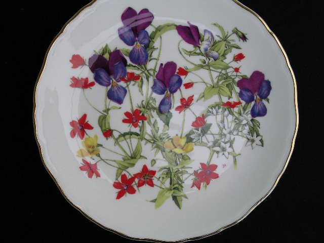 Dekoracyjny talerz porcelanowy, sygnowany jakością Royal Doulton - z kolekcjonerskiej serii Britains Wild Flowers ze zdobieniami autorstwa Jo Hague. Swobodna malarska kreska i fantastycznie kolorowa malatura - kwiaty jak żywe :) Talerz notowany na międzynarodowej liście Bradexu (26-R64-10.4) pod indywidualnym numerem 6807A. Edycja limitowana tylko do 75 dni wypału. Rant złocony, delikatnie ryflowany. Błyszczące szkliwienie. 21,5 x 1,5 cm. Stan zachowania bardzo dobry. Wartość kolekcjonerska... i nie tylko :)