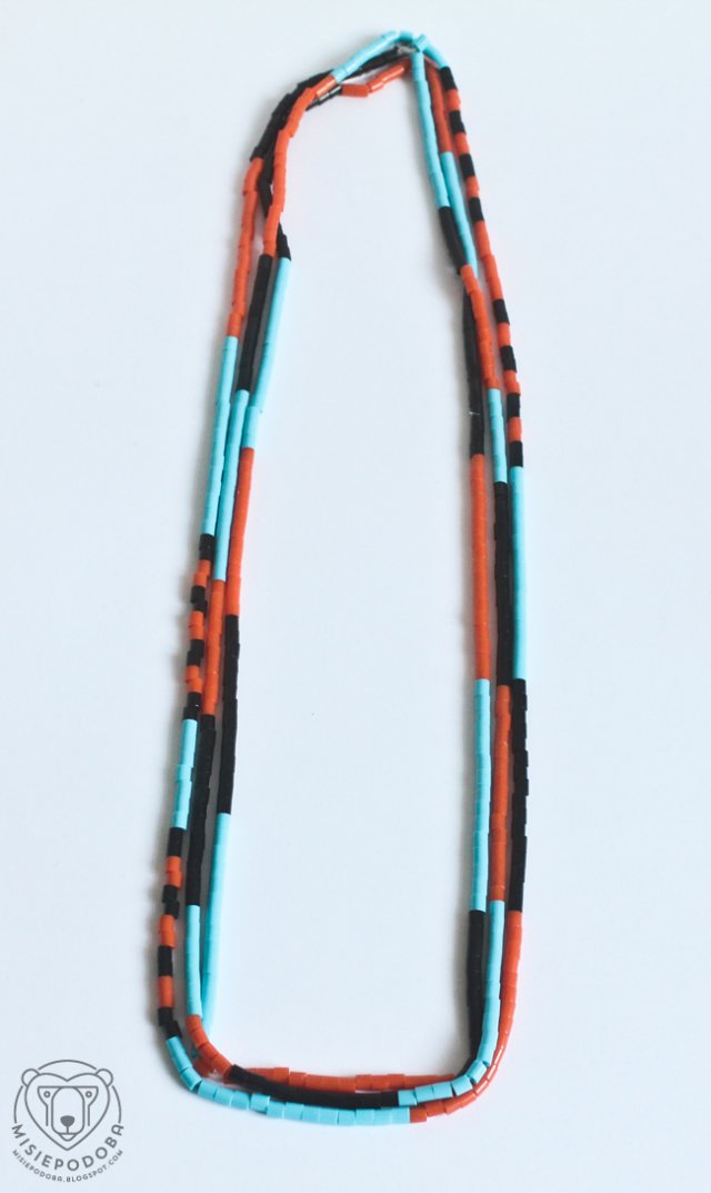 Naszyjnik z serii Kenzo w eklektycznym stylu, łączący swobodę cygańskiej bohemy z elementami zaczerpniętymi z folku i orientu. Seria bardzo malownicza z lekką nutą romantyzmu i awangardy. Wild IV tworzą 3 pentelki o dł. 44 cm wykonane z drobnych, plastikowych koralików.