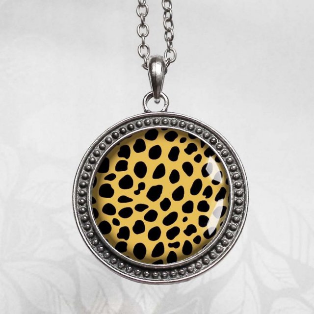 Unikatowy naszyjnik z autorską grafiką. Okrągły wisior w kolorze antycznego srebra, zawieszony na łańcuszku. Łańcuszek posiada zapięcie, można go wyjąć i wisior zawiesić na innym łańcuszku lub rzemieniu. Motyw graficzny umieszczony za wypukłym szkłem - tzw. kaboszonem nadającym efekt 3D. Obrazek jest bardzo wyraźny, w intensywnych kolorach. Wydruk najwyższej jakości na papierze foto. Biżuteria nie zawiera niklu i ołowiu.