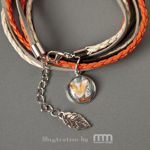 Bransoletka z możliwością noszenia jako naszyjnik, to bardzo romantyczne, nostalgiczne i kobiece malutkie dzieło sztuki. Obrazek pod szkiełkiem to autorska ilustracja. Bransoletka z kilku rzemieni prezentuje się wspaniale, a zawieszka oraz medalion dopełniają romantyczną stylistykę .