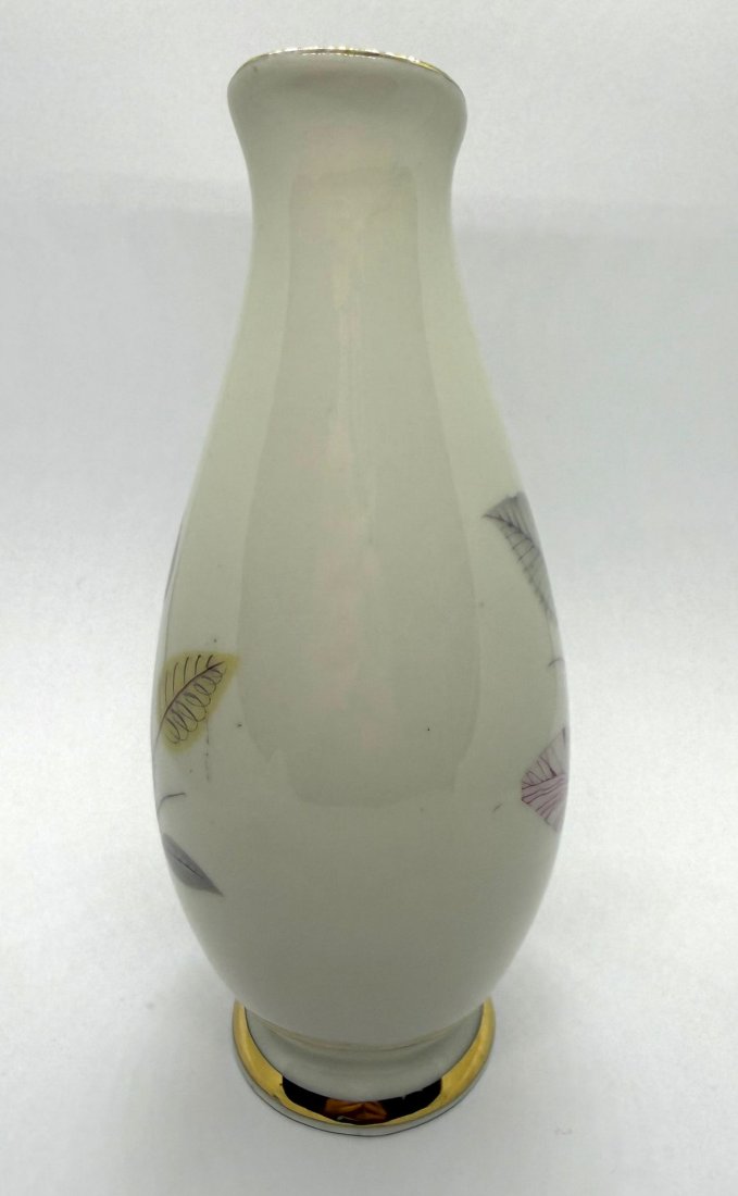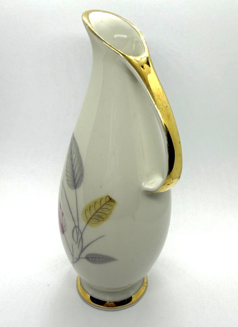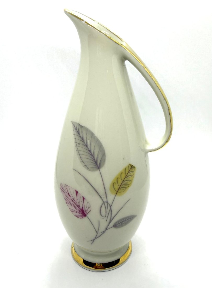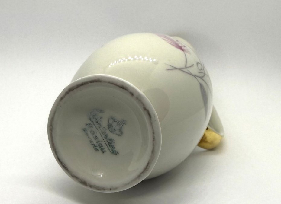 Model pochodzi z okresu ok. 1960–1980, kiedy fabryka tworzyła porcelanę o nowoczesnych, minimalistycznych formach i delikatnych zdobieniach inspirowanych naturą (sygnowany od spodu).