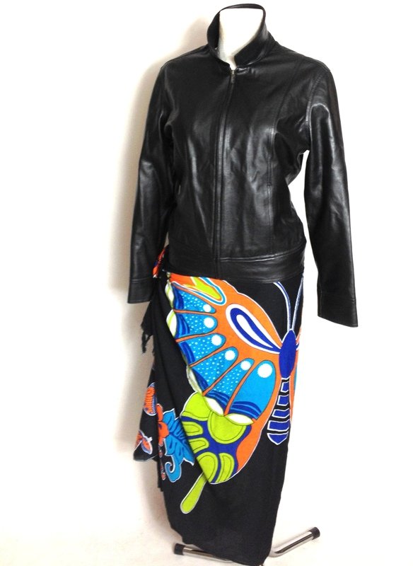 Sale-Czarna kurtka ala skórzana zasuwana na suwak,przy rękawach również suwaki, na podszewce.Z boku posiada kieszenie.Fason bardzo delikatnie rozkloszowany.