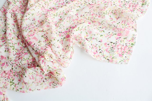Zwiewny szal w subtelne kwiatowe wzory. Materiał to prawdopodobnie wiskoza.