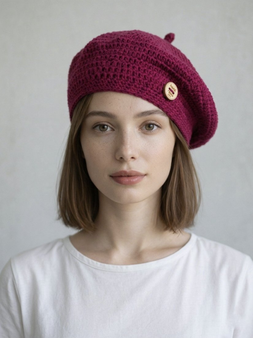 Uniwersalny rozmiar i elastyczny splot sprawiają, że beret dopasowuje się do różnych kształtów głowy i można go nosić na kilka sposobów – klasycznie, lekko zsunięty do tyłu lub na bok.