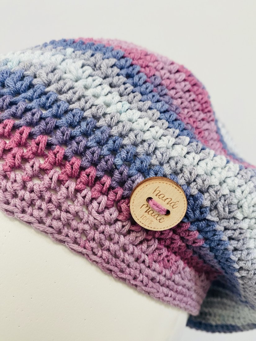 Lekki, wiosenny beret wykonałam ręcznie na szydełku z wysokiej jakości włóczki bawełniano-akrylowej, która zapewnia wygodę noszenia przez cały dzień. Certyfikat OEKO-TEX® Standard 100 potwierdza, że przędza jest bezpieczna dla zdrowia.
