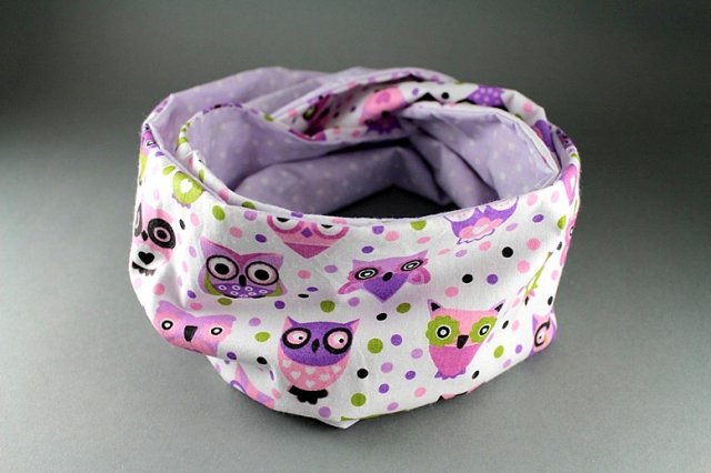 Witaj w moim butiku. Mam do zaoferowania własnoręcznie wykonany lekki komin/szalik dla maluszka. Uszyty z dwóch bawełnianych tkanin w różnych kolorach. Komin jest dwustronny. Będzie śliczną ozdobą oraz skuteczną ochroną szyi na chłodniejsze dni. Wymiary: ok. 120 cm x 18 cm (+/- 1-2 cm)