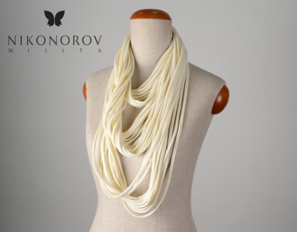 Wiosenna, mniej obfita wersja oryginalnego, designerskiego naszyjnika - szala, wykonanego z pasów dzianiny w kolorach wybranych. Naszyjnik można nosić jak szalik lub używać jako element stylizacji. Możliwość zamówienia naszyjnika w innym kolorze. Proszę o wcześniejszy kontakt