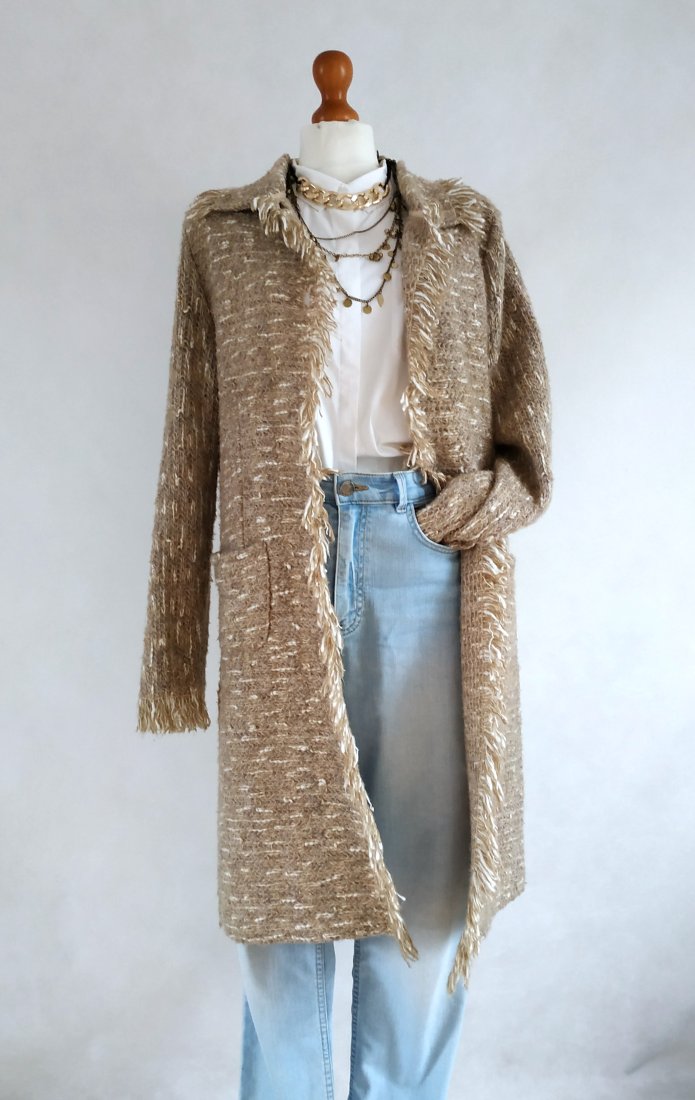 Tagi: #długi żakiet swetrowy, #sweter płaszcz, #wiosenny płaszcz, #żakiet tweedowy