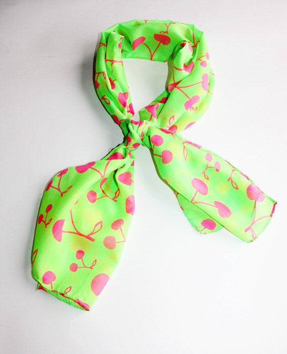Szal w intensywnych, nasyconych kolorach. Zdjęcia nie oddają nasycenia kolorów. Jest to neonowy róż i zieleń.