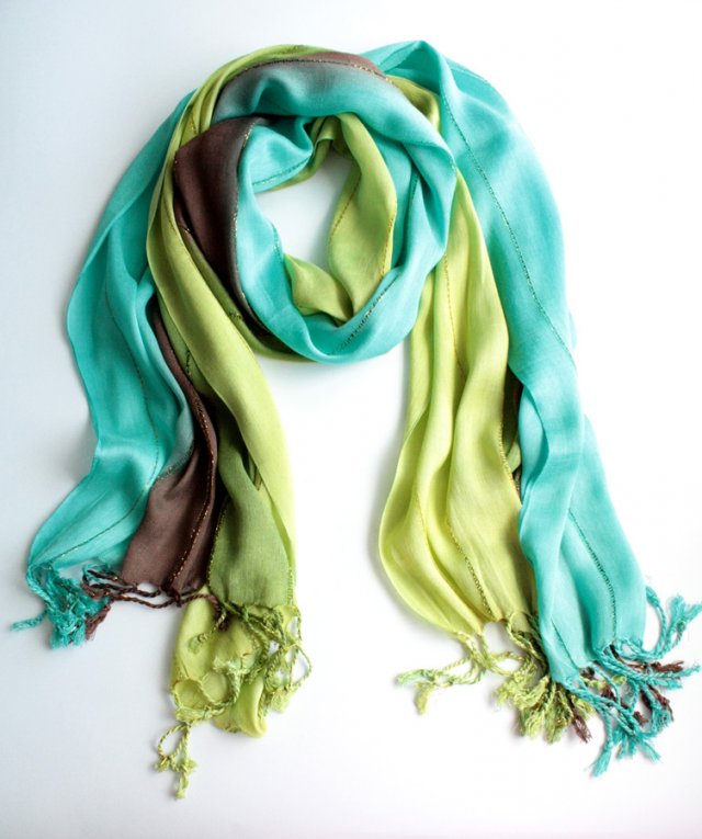 Wielki, piękny szal ozdobiony mereżkami, w które wpleciono delikatną złotą nitkę.