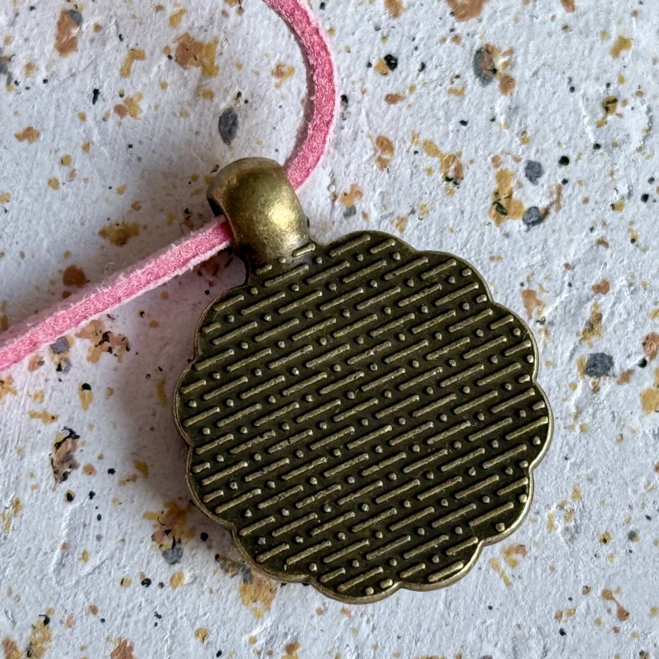 Zawieszony na miękkim rzemyku imitującym zamsz w uroczym różowym kolorze, który można zawiązać na dowolnej wysokości - dokładnie tak, jak lubisz. Dzięki temu wisiorek dopasuje się zarówno do dekoltu sukienki, jak i prostego swetra czy koszuli.