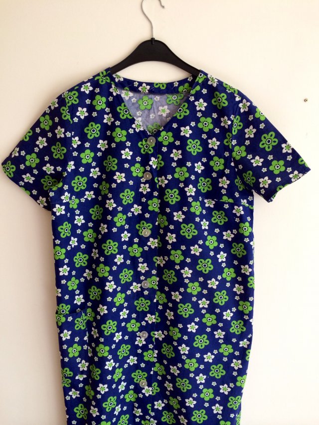 Bawełniana sukienka zapinana od góry do dołu na guziki. Kwiatowym wzór. Z boku jedna kieszonka