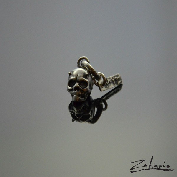 Wisior wykonany ręcznie w całości ze srebra w kształcie rogatej czaszki. Żłobienia i detale tworzone pod lupą.