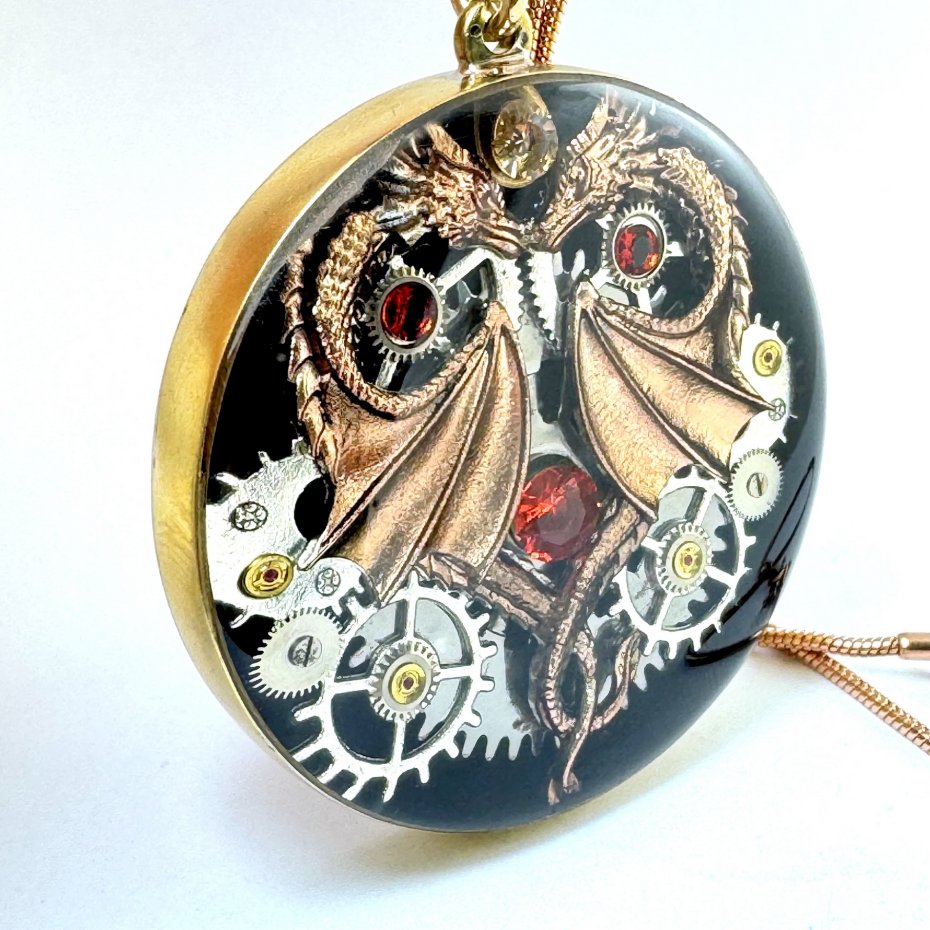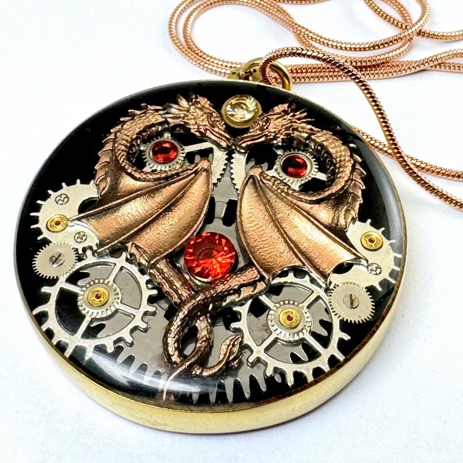 Unikatowy egzemplarz - wisior z pięknymi smokami splecionymi ogonami. Wisior przyozdobiony błyszczącymi kryształami. Smoki czule zaplecione patrzące na siebie ostrożnie :-)