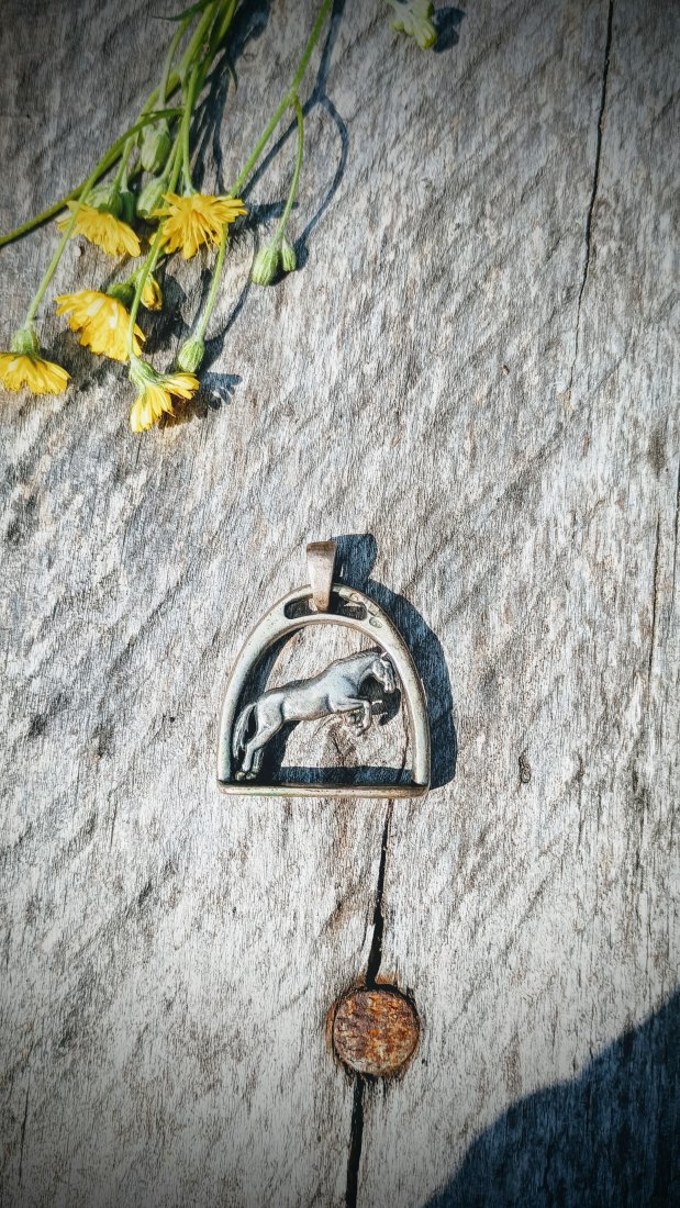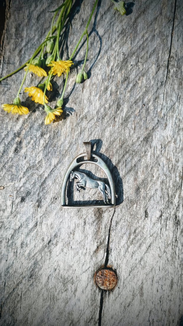 Duży wisior ze srebra. Koń w strzemieniu. Próba 925.