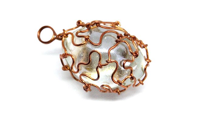 Spore, szklane jajko wykonane z przejrzystego (odrobinę zielonkawego), nieco opalizującego szkła. Opleciony misternie miedzianym drutem. Posiada oczko, przez które można przewiesić łańcuszek, wstążkę czy rzemyk.