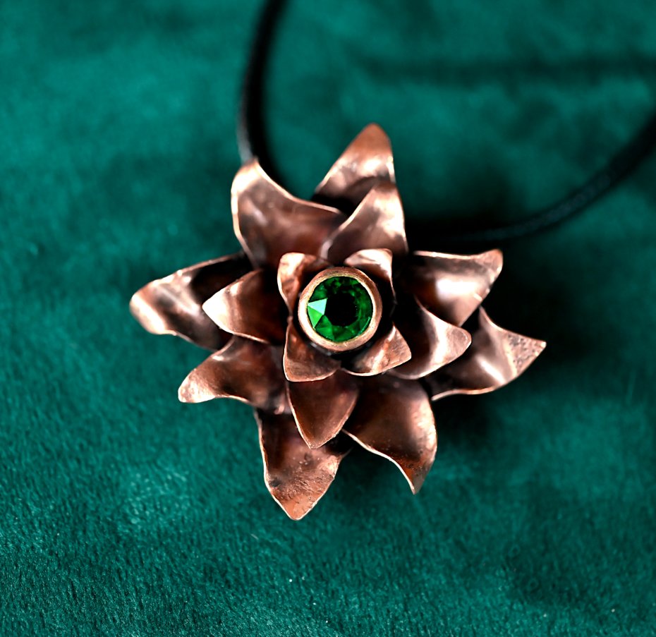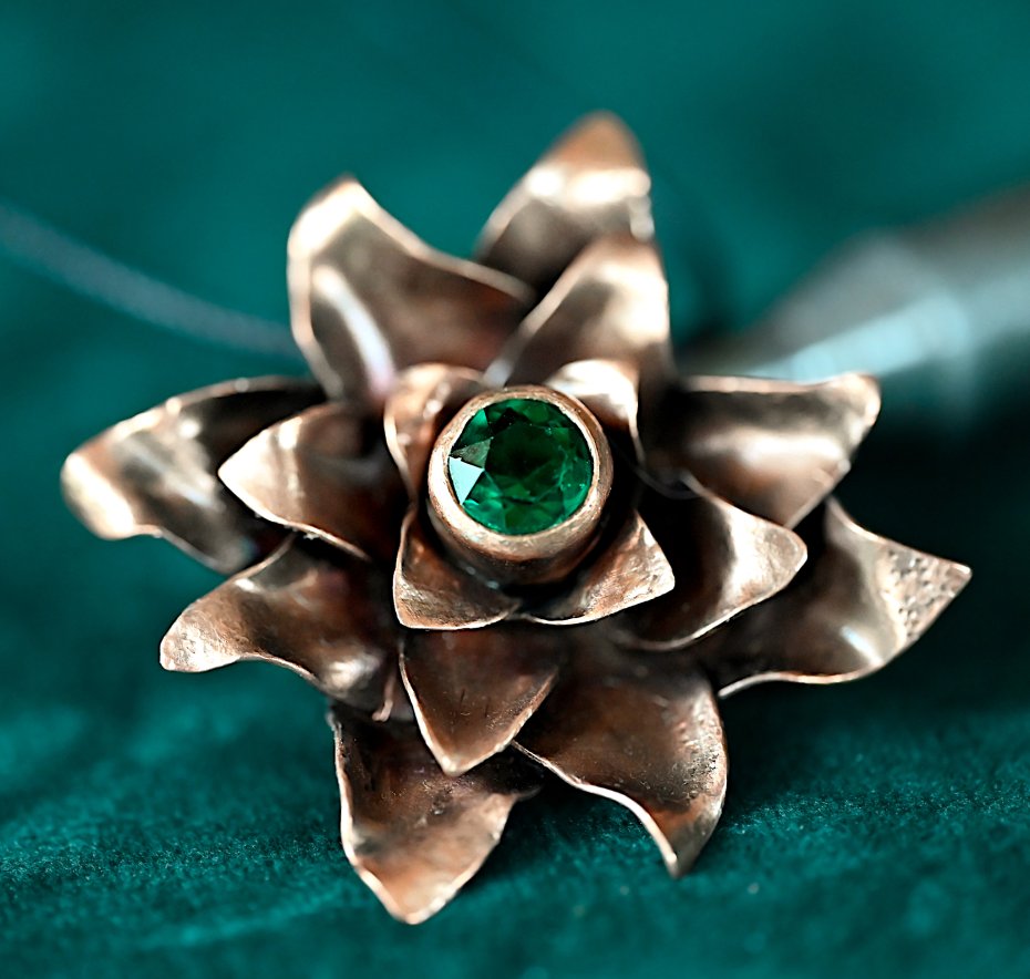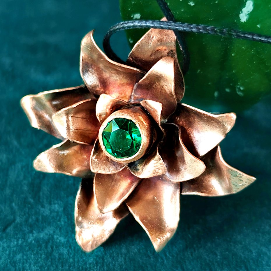 Tagi: #biżuteria artystyczna, #wisior kwiatowy, #wisiorek miedziany, #wisiorek z kamieniem