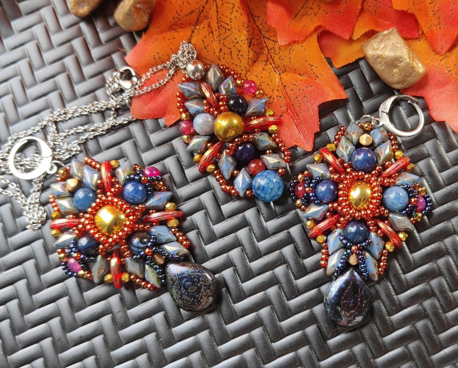 Wisiorek ten można nosić sam lub w komplecie z kolczykami i bransoletką.